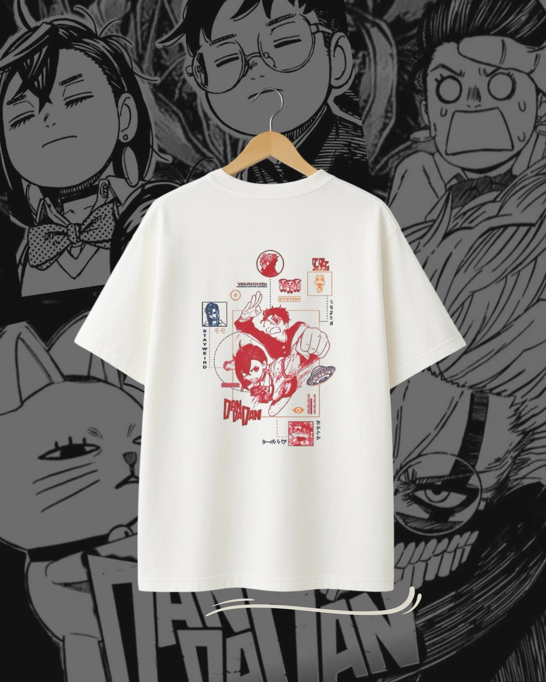 Este polo en oversize blanco, algodón 20/1 premium, refleja la esencia de Dandadan: acción sobrenatural, humor inesperado y un vínculo que crece en medio del caos.